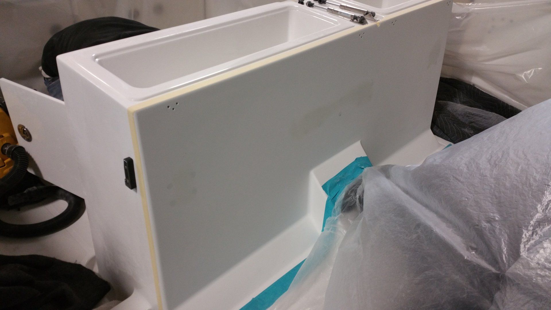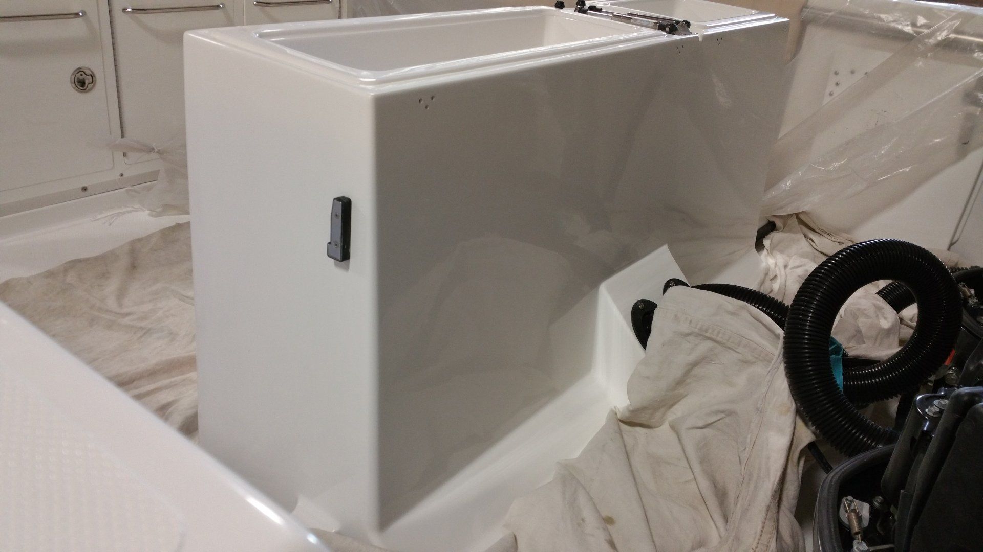 Hull restoration on a 34' Wellcraft Coastal that had Sandy damage.