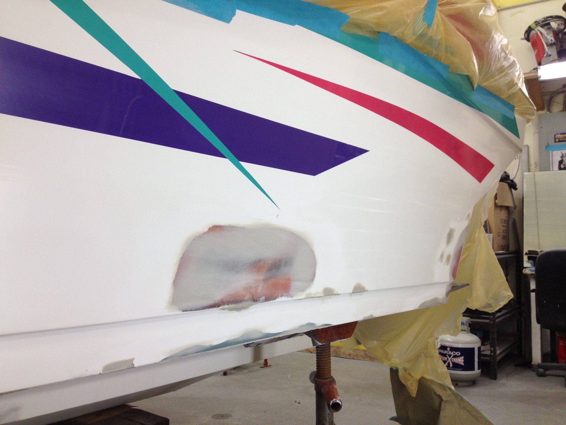 - Hull stripped, fiberglass work and body done